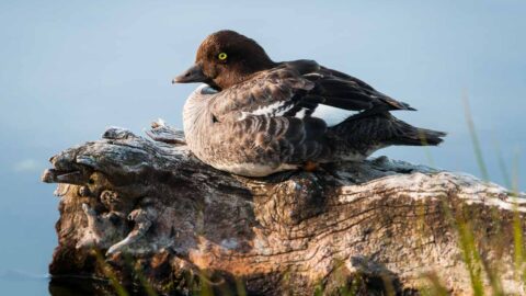 This duck is no joke – fierce females are the ones who drive this species’ plot line. Wintering in the roughest corners of our coastline, the females choose their mates and then lead them up rivers, just like salmon, to the same breeding spot each year.