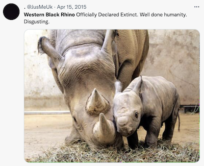 Barbara is the CEO of Humane Canada and she believes extinction is hard to comprehend. Consider the extinction of the western black rhinoceros, Barbara tells us.