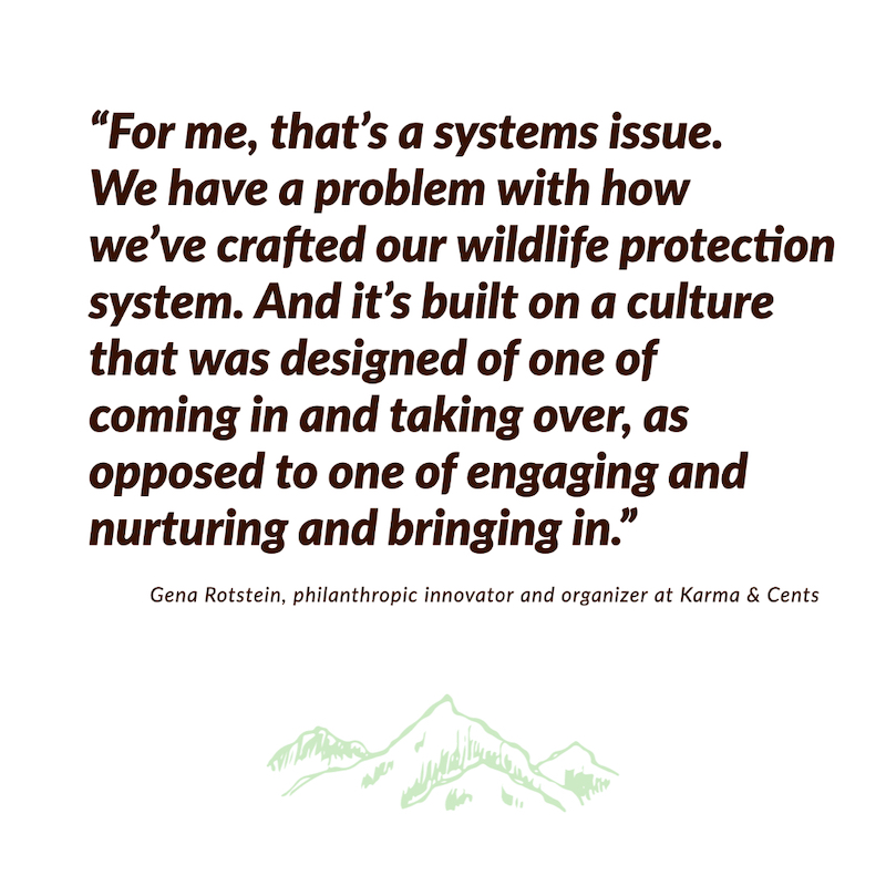 “For me, that’s a systems issue. We have a problem with how we’ve crafted our wildlife protection system. And it’s built on a culture that was designed for coming in and taking over, as opposed to one of engaging and nurturing and bringing in.”