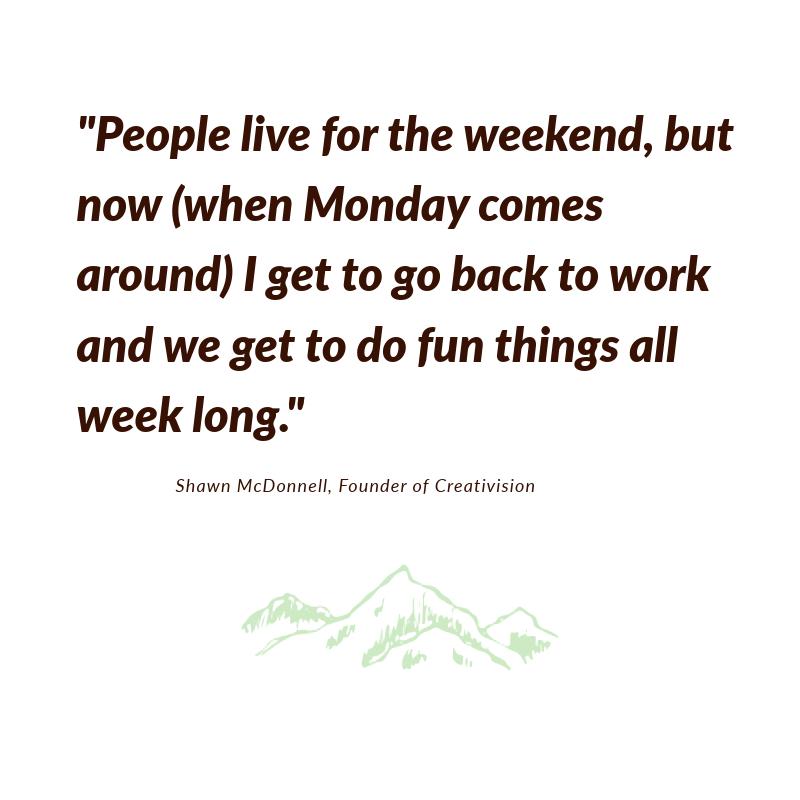 And Shawn MacDonell really wants you to love what you do. He founded Creativision – a wildly successful platform that allows him to gather, shape and tell better stories that celebrate people, life and happiness. It’s like a marketing firm, but the goal is to help good people do better things.