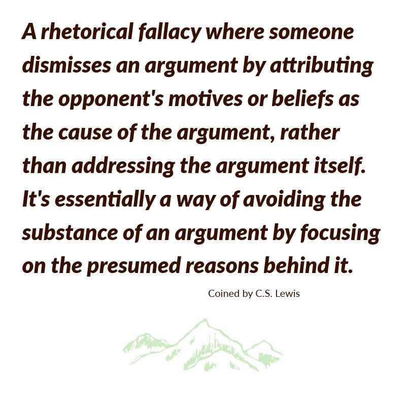 “It’s easy to say, ‘Well, their motive is they want money. Or they want power. Or they want influence. Or they want the world to look like the way they want it to look like’.  And we stop thinking about what they are saying. C.S. Lewis called it ‘bulverism’. The idea that you should always look at the facts and ask: ‘What are they saying?’ And you also need to ask: ‘Why and what is the motivation?’”