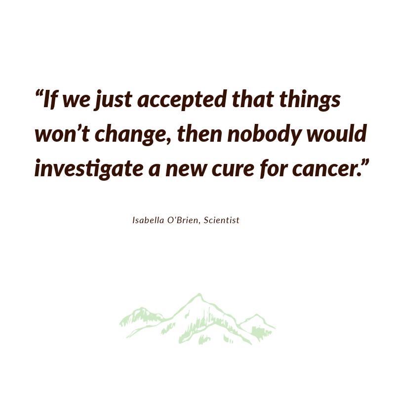 “If we just accepted that things won’t change, then nobody would investigate a new cure for cancer.”
