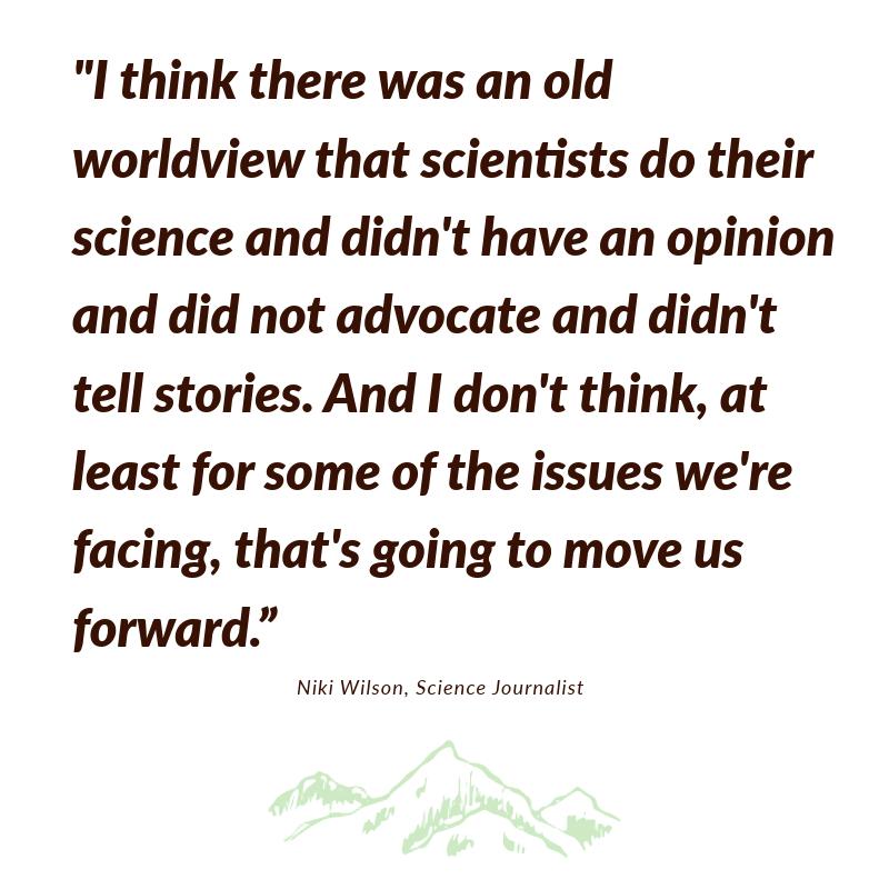 “I think it’s really imperative scientists have communications training. I think there was an old worldview that scientists do their science and didn’t have an opinion and did not advocate and didn’t tell stories. And I don’t think, at least for some of the issues we’re facing, that’s going to move us forward.”