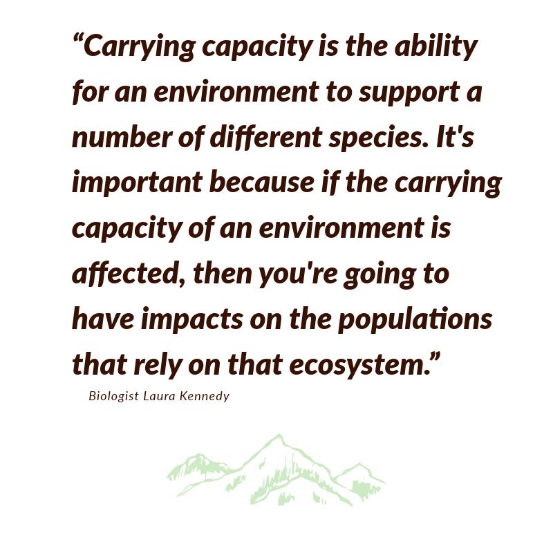 “Carrying capacity is the ability for an environment to support a number of different species. It’s important because if the carrying capacity of an environment is affected, then you’re going to have impacts on the populations that rely on that ecosystem.”