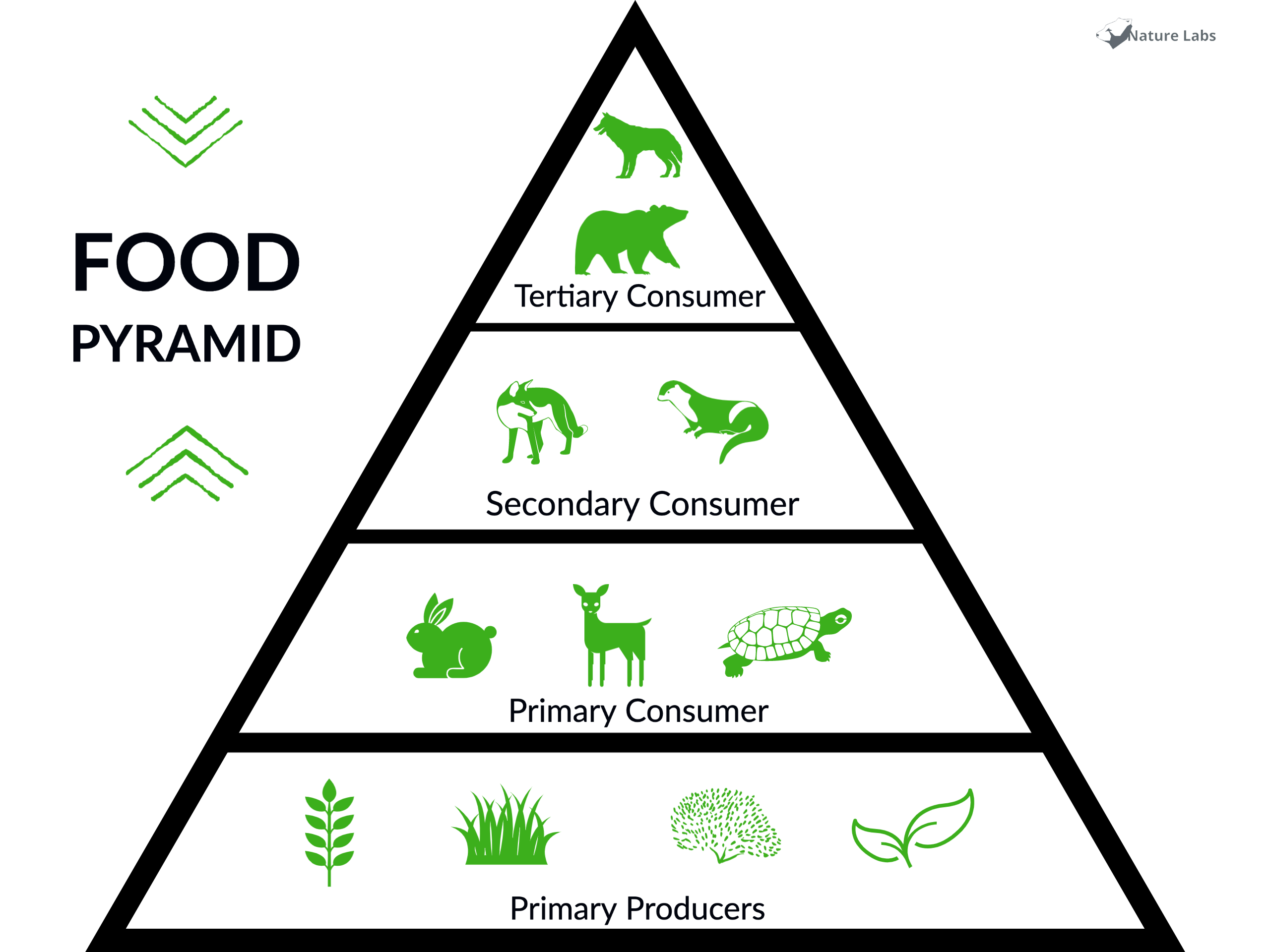 And, finally, at the very top of the pyramid – furthest away from the start of the food energy transfer process? Top carnivores, also known as tertiary consumers.
