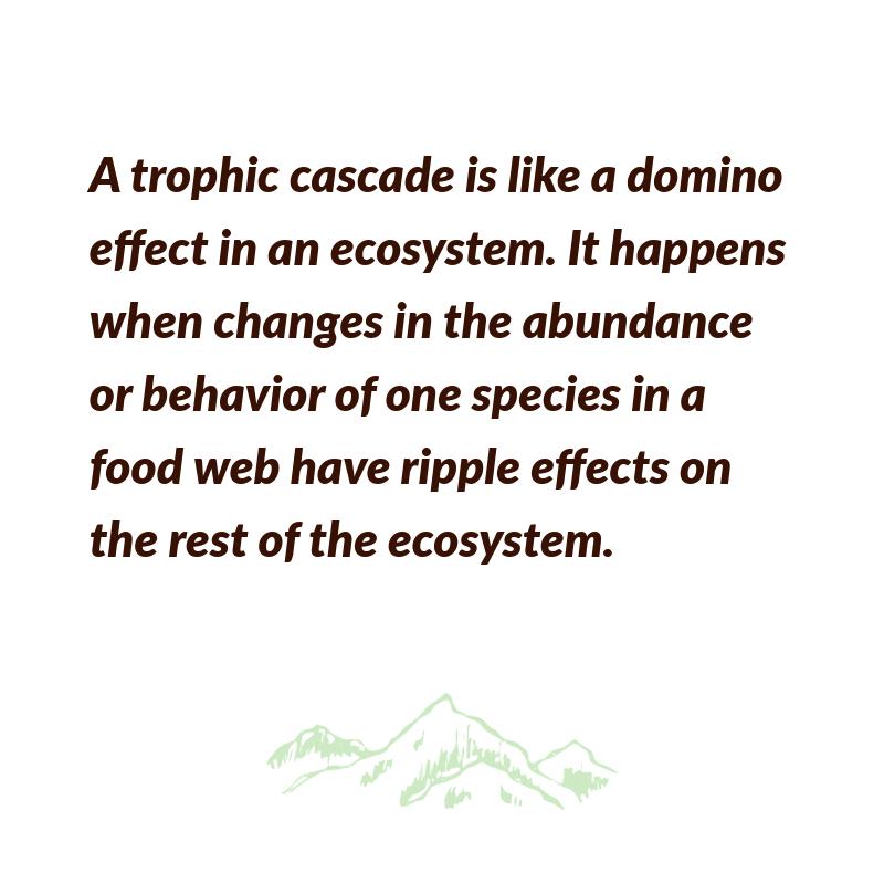 It’s the domino effect that occurs when one major component – a species say – is removed from an ecosystem. It can have a ripple effect that alters life up and down the food chain. Sometimes in small ways; sometimes in very big ways.
